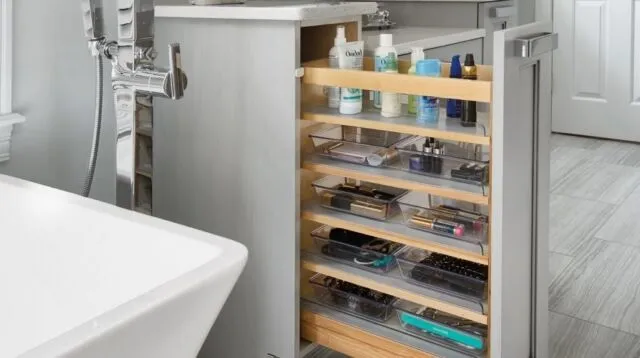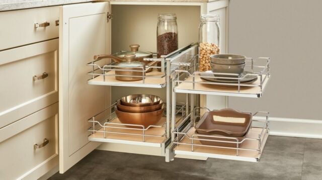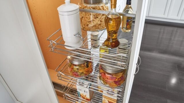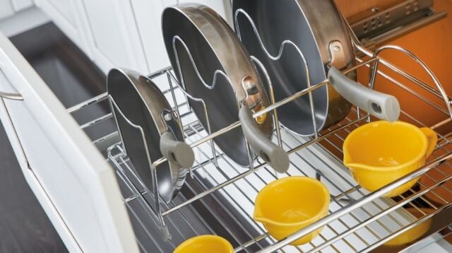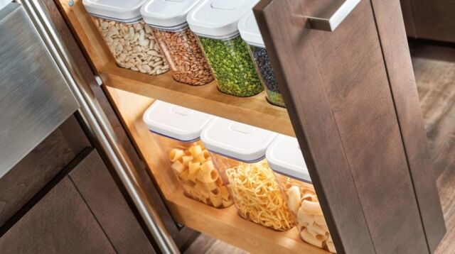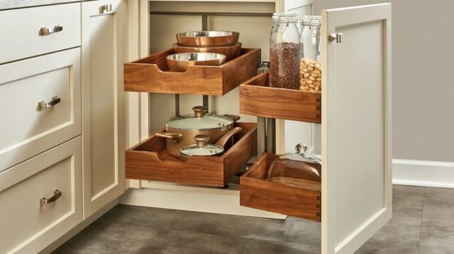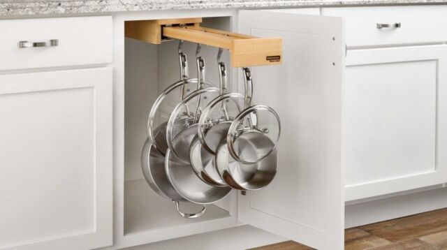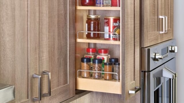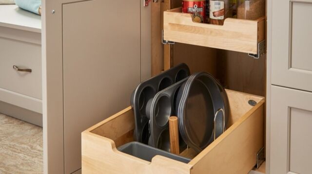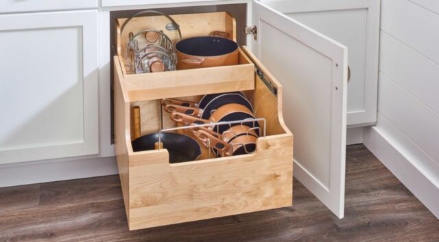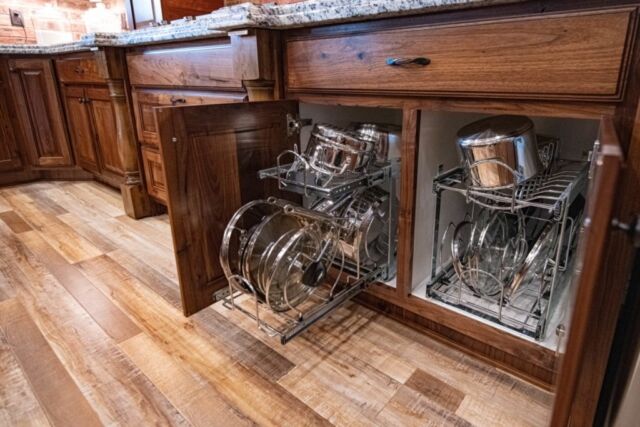Pull-Out Shelves — Maximize storage with easy-access pull-out shelves. These work well in lower cabinets, allowing you to slide everything out smoothly and bring everything within reach.