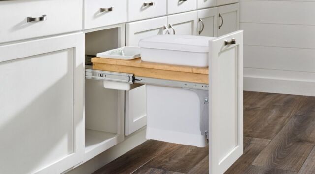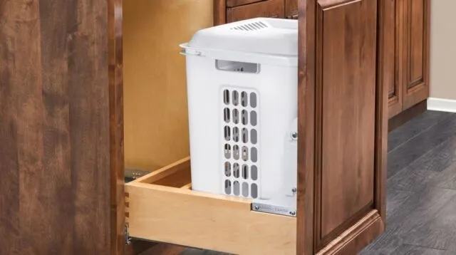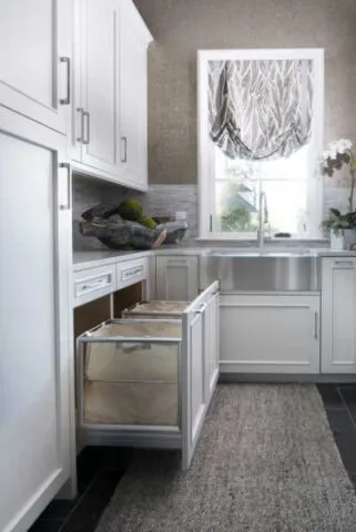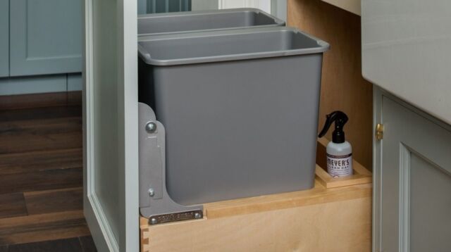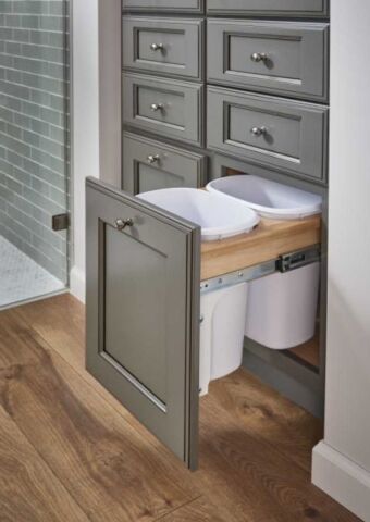 Trash & Recycling Pull-Outs — Hide your bins without sacrificing convenience. Pull-out waste systems keep your space clean and functional. We also provide hidden pull-out laundry baskets and hampers to keep your laundry room organized and clean.