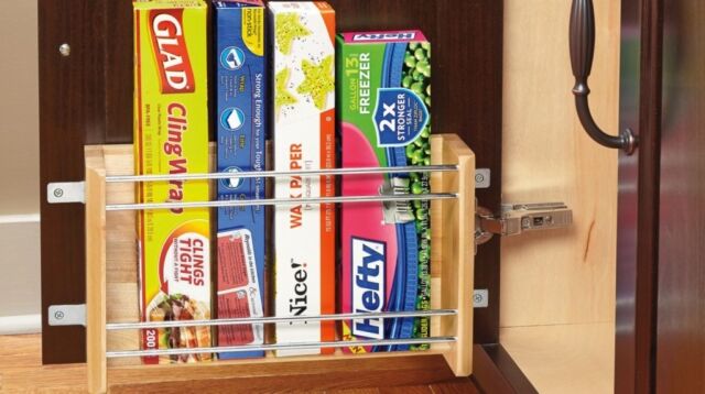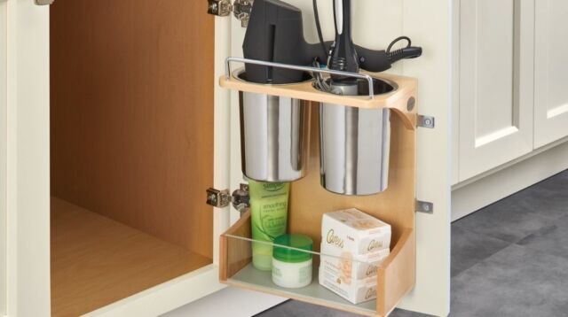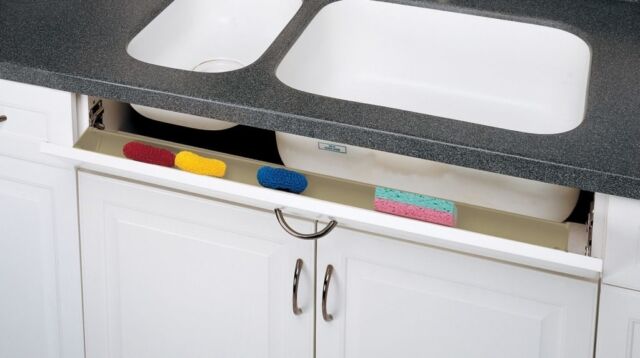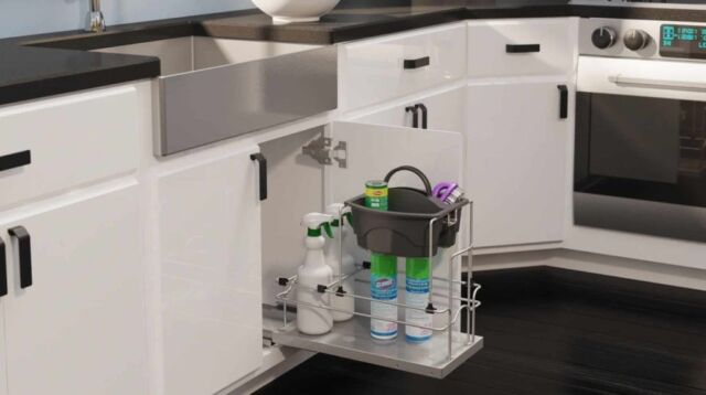 Under-Sink Caddies — Consider under-sink caddies that fit snugly around plumbing to help you organize cleaning supplies, plastic bags, and anything else creating choas.