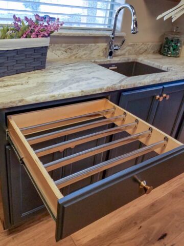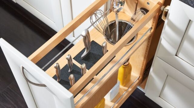 Smooth glide tracks, ergonomic pulls, and modular inserts are just some of the features that help make your cabinets work harder and smarter — making your life easier.